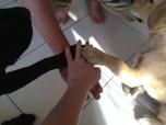 猫アタックを受け止める犬